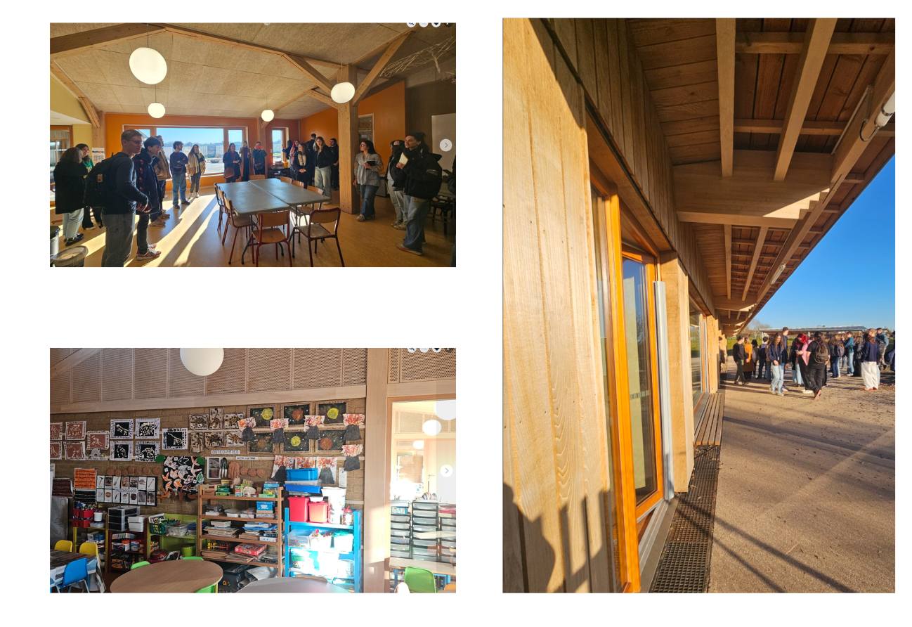 Accompagnés par Amélie Fontaine de l’Atelier Amélie Fontaine, conceptrice du projet, et le maire de Gommegnies, Benoît Guiost, les participants ont exploré cette école maternelle éco-construite et bioclimatique, pensée pour minimiser son impact environnemental et offrir un cadre de vie sain aux enfants.