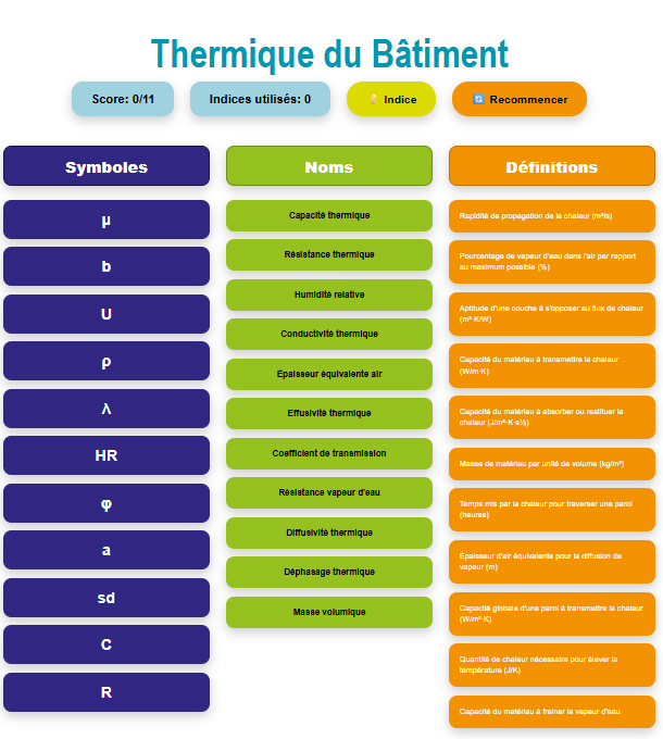 Dans le cadre de notre démarche de rénovation efficiente, durable et circulaire, nous sommes heureux de vous proposer un nouvel outil ludique : un jeu de correspondance thermique en version interactive.